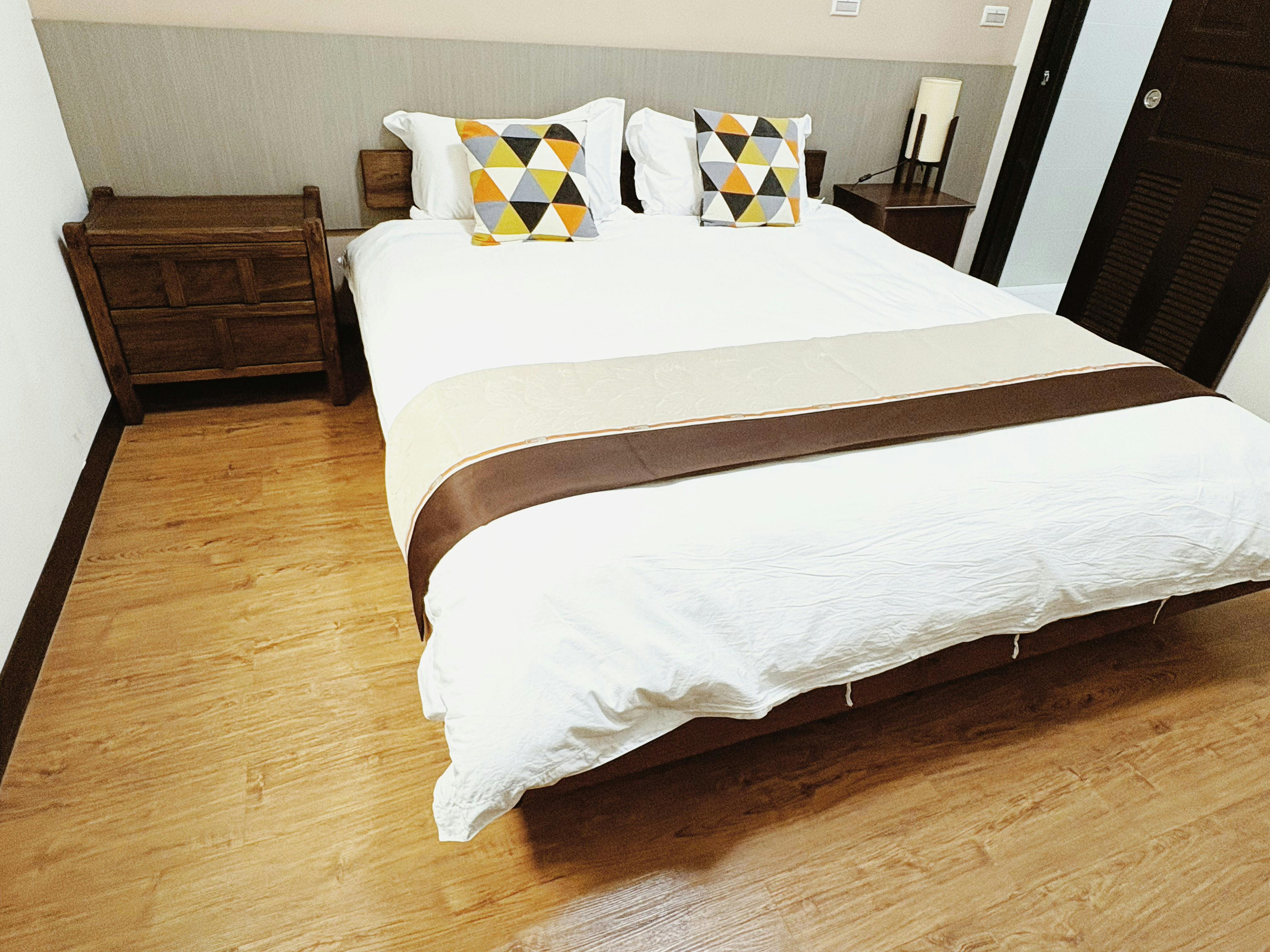 This room type has 2 bedrooms, 2 bathrooms, with living room and balcony, 60 square meters, the master bedroom has an independent bathroom, the living room has a public bathroom, 2 bedrooms and the living room all have Windows. The Room furnishings a variety of high-grade fragrant nanmu furniture, highlighting the elegant quality. The nanmu queen bed in the master bedroom is paired with high-grade latex mattresses and exquisite bedding, allowing guests to have a better sleep experience. The living room has a small refrigerator, disinfection cabinet, high-end kung fu tea set. The master bedroom bed of 1.8*2.0, and the second bedroom can be arranged with a large bed of 210*200 or a double bed of 105*200
